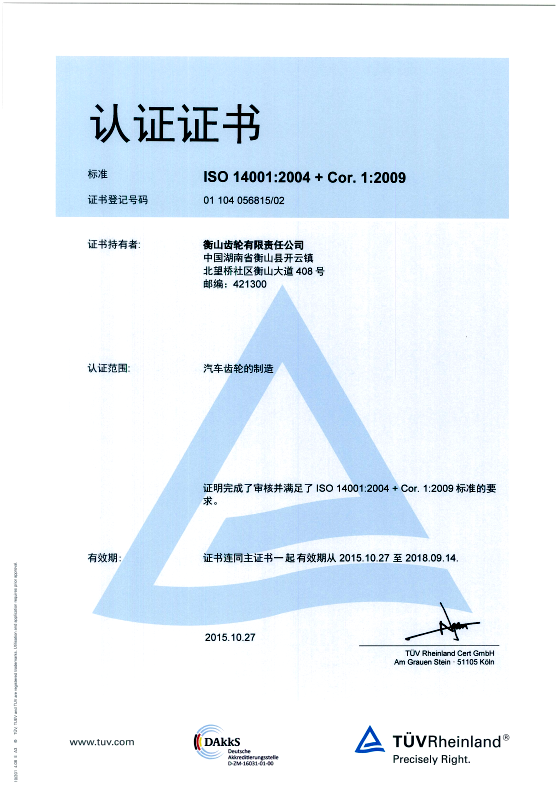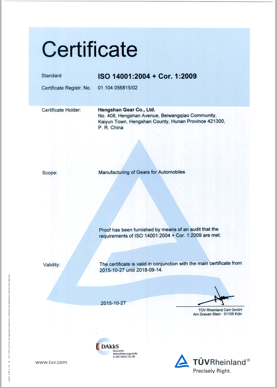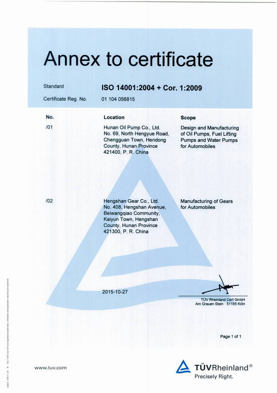 Environmental certificate